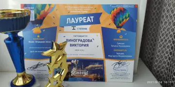 Виктория Виноградова воспитанница вокальной студии МБУК «Единый социально-культурный центр» солистка Образцового ансамбля песни «Детский мир» (хормейстер Т.Г. Сумская, режиссер М.В. Земцова) представляла г. Гусь-Хрустальный в престижных Международных конкурсах-фестивалях эстрадной песни, которые проходили в мегаполисах РФ /Казань, Санкт-Петербург, Москва/и вновь одержала яркие Победы. За последние два месяца Виктория покорила своим очарованием, артистизмом, исполнительским искусством, ярким сценическим образом профессиональное жюри трех конкурсов: