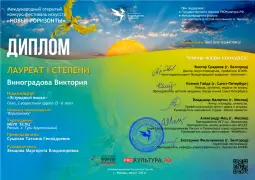 • Международный конкурс-фестиваль искусств «НОВЫЕ ГОРИЗОНТЫ» - диплом ЛАУРЕАТА I степени