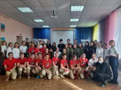 На встрече присутствовали воспитанники детского центра «Исток», юнармейцы, активисты РДШ, педагоги.