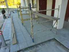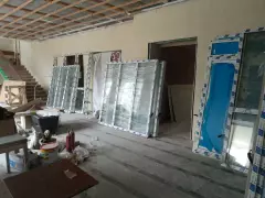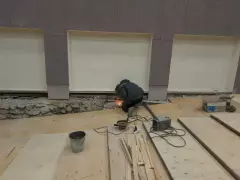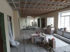 В настоящий момент завершена покраска стен в помещениях первого и второго этажа. Уложены фанерные листы в киноконцертном зале. Производится укладка плитки танцевального зала. Продолжается монтаж системы отопления, включая сварочные работы. Готовность второго этажа составляет 90%. Завезены пластиковые окна и фурнитура. Остались последние «штрихи» по отделке входной группы.