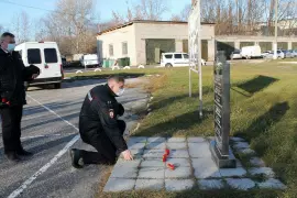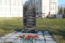Полицейские почтили память погибших сотрудников минутой молчания и возложили цветы к подножию мемориала.