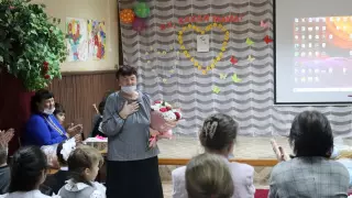 Наряду с конкурсами мамочек поздравляли ученики школы. Пели для них песни, читали стихи. А также заранее некоторые классы подготовили видеопоздравления.