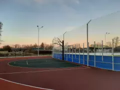 Спортивный объект оборудован зрительской трибуной. По периметру установлено освещение. В прожекторы встроены энергосберегающие лампы.