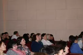 Под торжественную музыку глава района Василий Панин вручил почетные грамоты администрации Гусь-Хрустального района с личными поздравлениями. Также именинников поздравили заместитель заведующего отделом по культуре, физкультуре и спорту, молодежной и социальной политике Юлия Петухова с вручением почетных грамот отдела. На мероприятии была зачитана поздравительная телеграмма от областного совета профсоюза работников культуры.