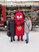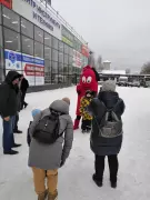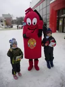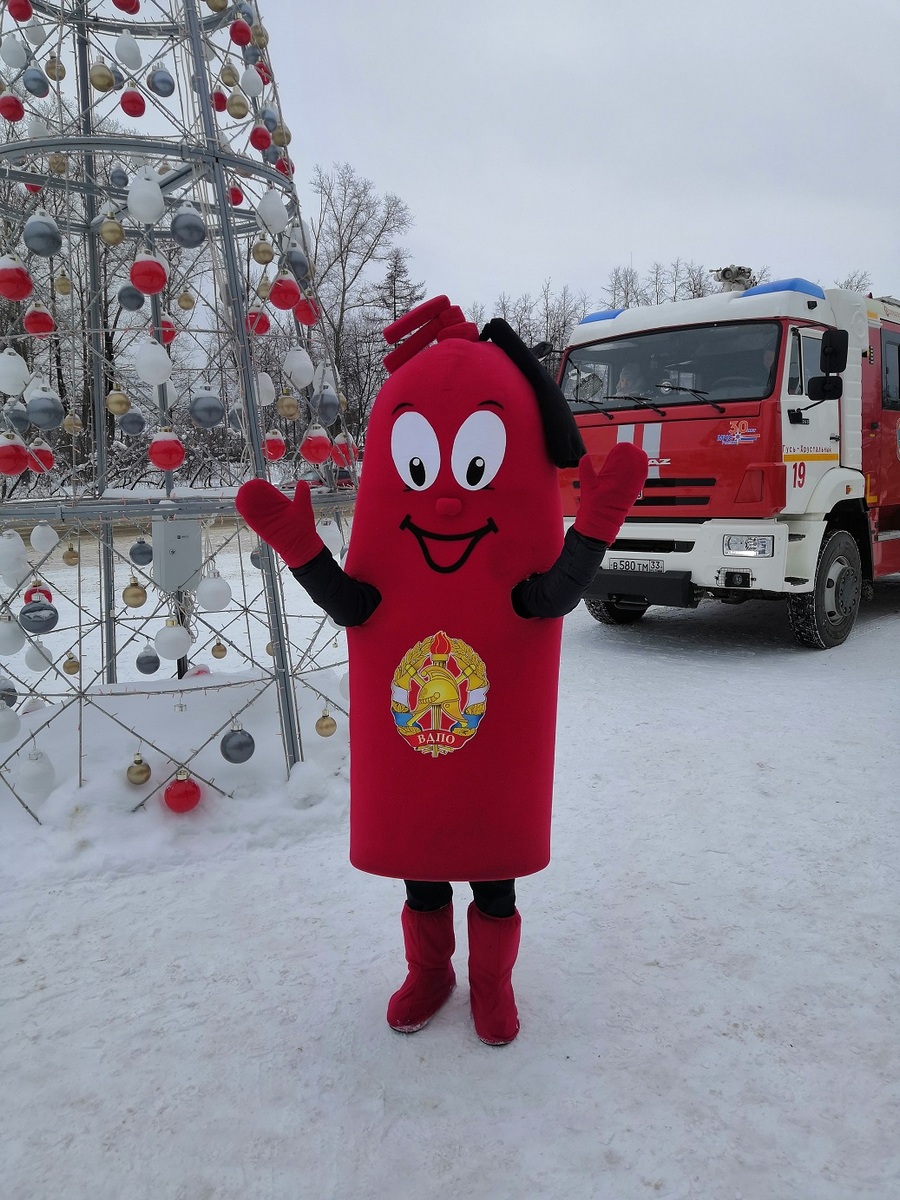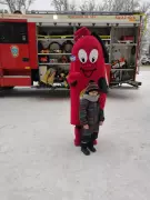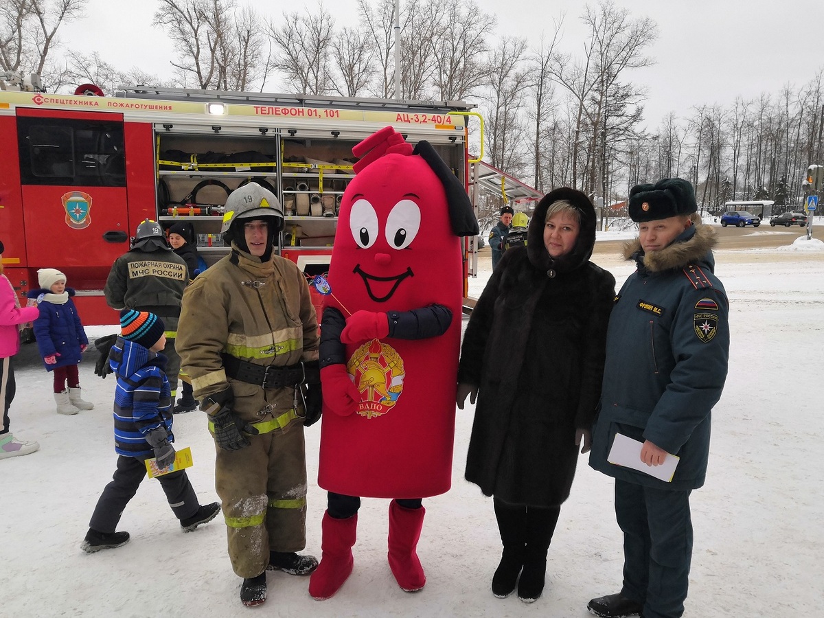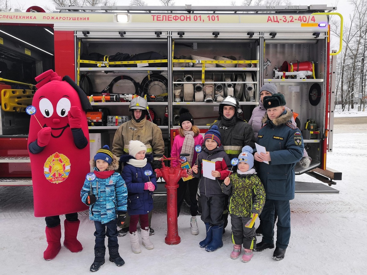 У магазина развернулась пожарная автоцистерна, сотрудники пожарно-спасательного гарнизона рассказывали всем желающим об устройстве спецавтомобиля, а символ пожарных – ростовая кукла-огнетушитель Кузьма Пожаркин – раздавал всем памятки с номером вызова пожарных 101.
