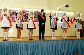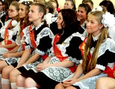 Очередной выпуск школы на Эстакаде насчитывает 20 человек. Не так уж много, согласитесь, но их поздравляли два первых класса общей численностью 51 человек, а в начале предстоящего учебного года за парты в четвертой школе впервые сядут порядка семидесяти детсадовских выпускников. У этой школы, которую здешние учащиеся считают самой лучшей, широкие перспективы. Но вернемся к празднику, который надолго запомнится как главным героям, так и всем остальным. Кроме одной девушки, которая проигнорировала свой «последний звонок». Юноши, элегантные и подтянутые, а их среди выпускников всего трое, были в строгих костюмах, рядом - очаровательные девушки в школьной форме советских времен были просто восхитительны. Правда, одна из их одноклассниц не захотела надевать форму и участвовать в праздничной программе, она сидела в зале в красивом зеленом платье и, мне кажется, в душе все же сожалела о своем выборе. Впрочем, это их личные дела. А те, кто был непосредственно в центре этого интересного шоу, устроенного ими, еще раз повторю, в первую очередь для себя, проявили отменные артистические данные, переживали каждый свой выход перед залом всей душой. То и дело просившиеся наружу девичьи слезы не мешали происходившему на сцене, а придавали общей атмосфере, царившей в зале, особую трогательность.