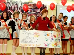 Был еще один выход директора школы. Получив от своих подопечных шикарный букет цветов, Татьяна Причепа сказала им наполненные чувством и глубоким смыслом напутствия как наказ на будущее. Приглашались к сцене и классные руководители ребят: Анастасия Ишунькина, которая вела их два года после начальной школы, и Ольга Ракислова, принявшая и выпустившая тех, кто дошел до 11-го класса, в свободное плаванье. И вновь звучали обоюдные благодарности, а потом наставления классных дам, которые вручили каждому выпускнику по заветному пакетику с символическими сувенирами, в том числе «подковой счастья». Заместителю директора по хозяйственной части Елене Антоновой выпускники вручили два больших торта для поваров и технических работников. Молодцы, никого не забыли. А в завершение основной части программы они вышли на сцену с плакатом «Дорогая Ольга Юрьевна! Спасибо Вам за все!» с разноцветными отпечатками ладоней. Поднялась на подмостки и Ольга Ракислова – вот она своеобразная семья, птенцам которой суждено скоро разлететься по своим жизненным маршрутам.