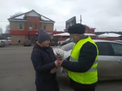 Сотрудники Госавтоинспекции межмуниципального отдела МВД России «Гусь-Хрустальный» и представители народной дружины «Дорожный надзор» провели на улицах города праздничную акцию «Цветы для автоледи», посвященную Международному женскому дню.