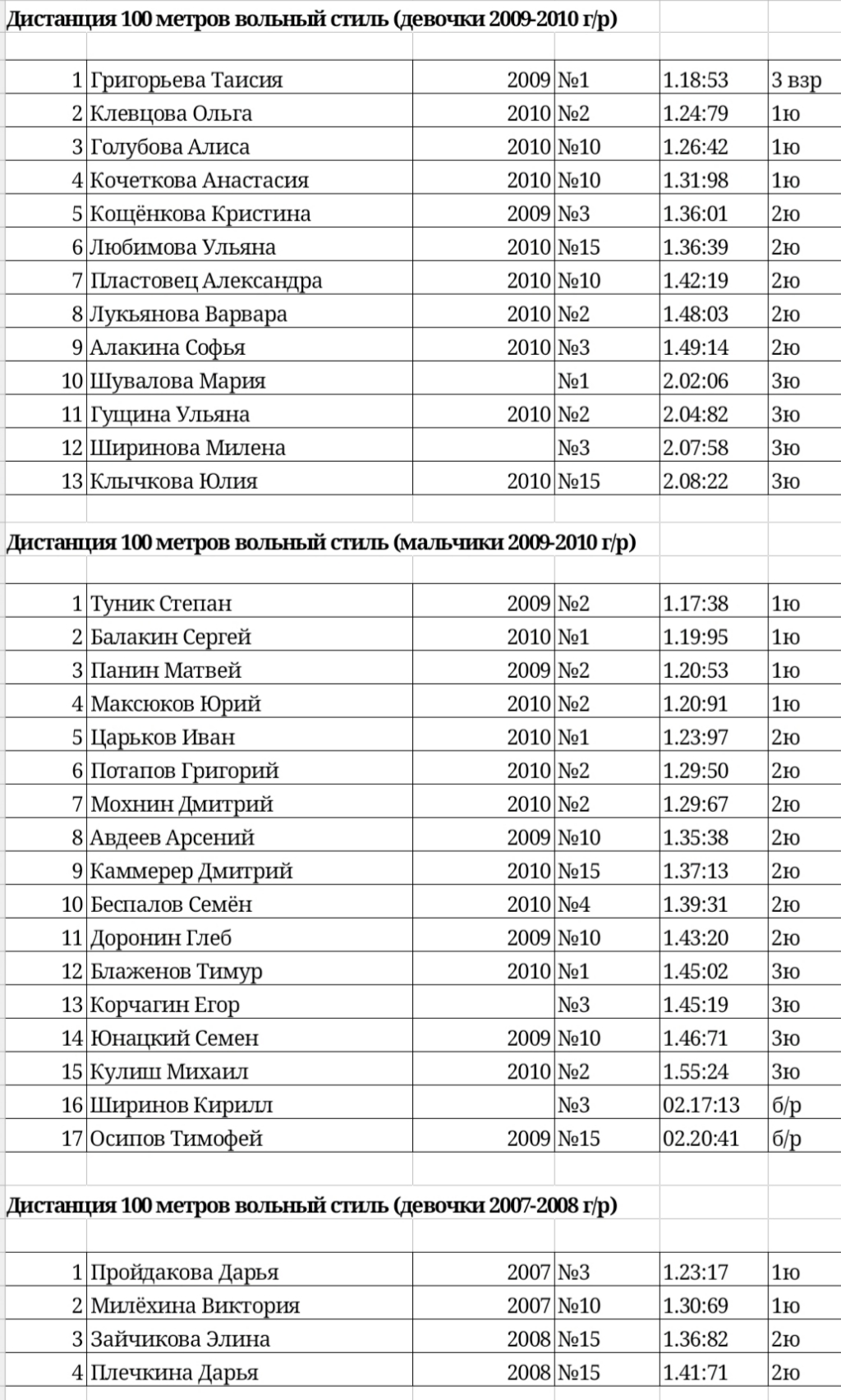 спортсмены 2009-2010 г.р., 2007-2008 г.р., 2005-2006 г.р., 100 метров.