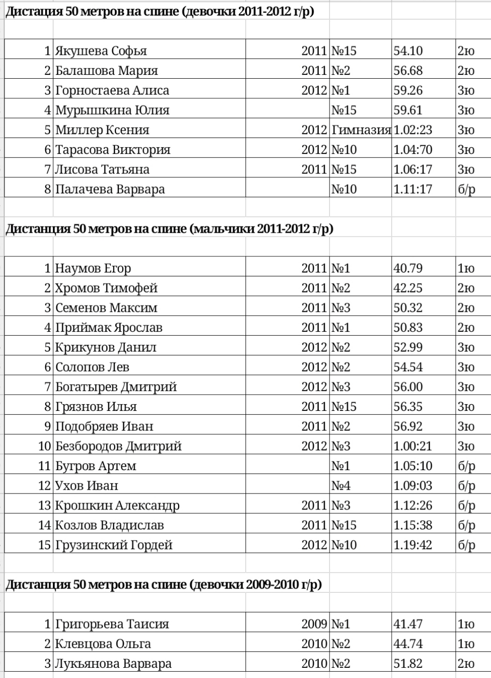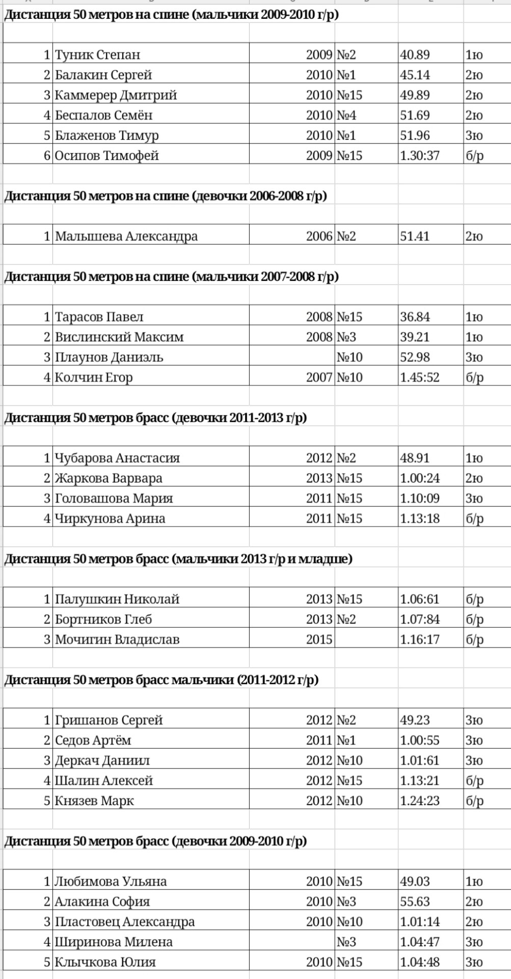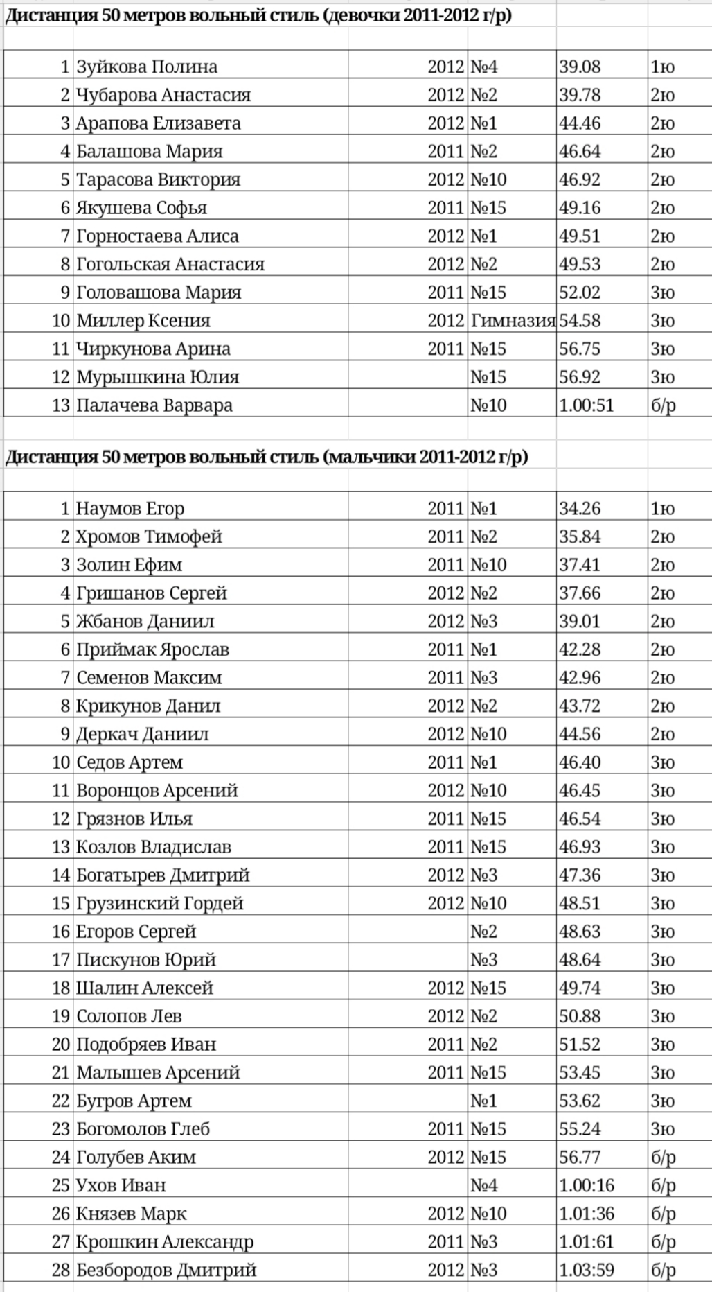 спортсмены 2011-2012 г.р. должны были преодолеть 50 метров;