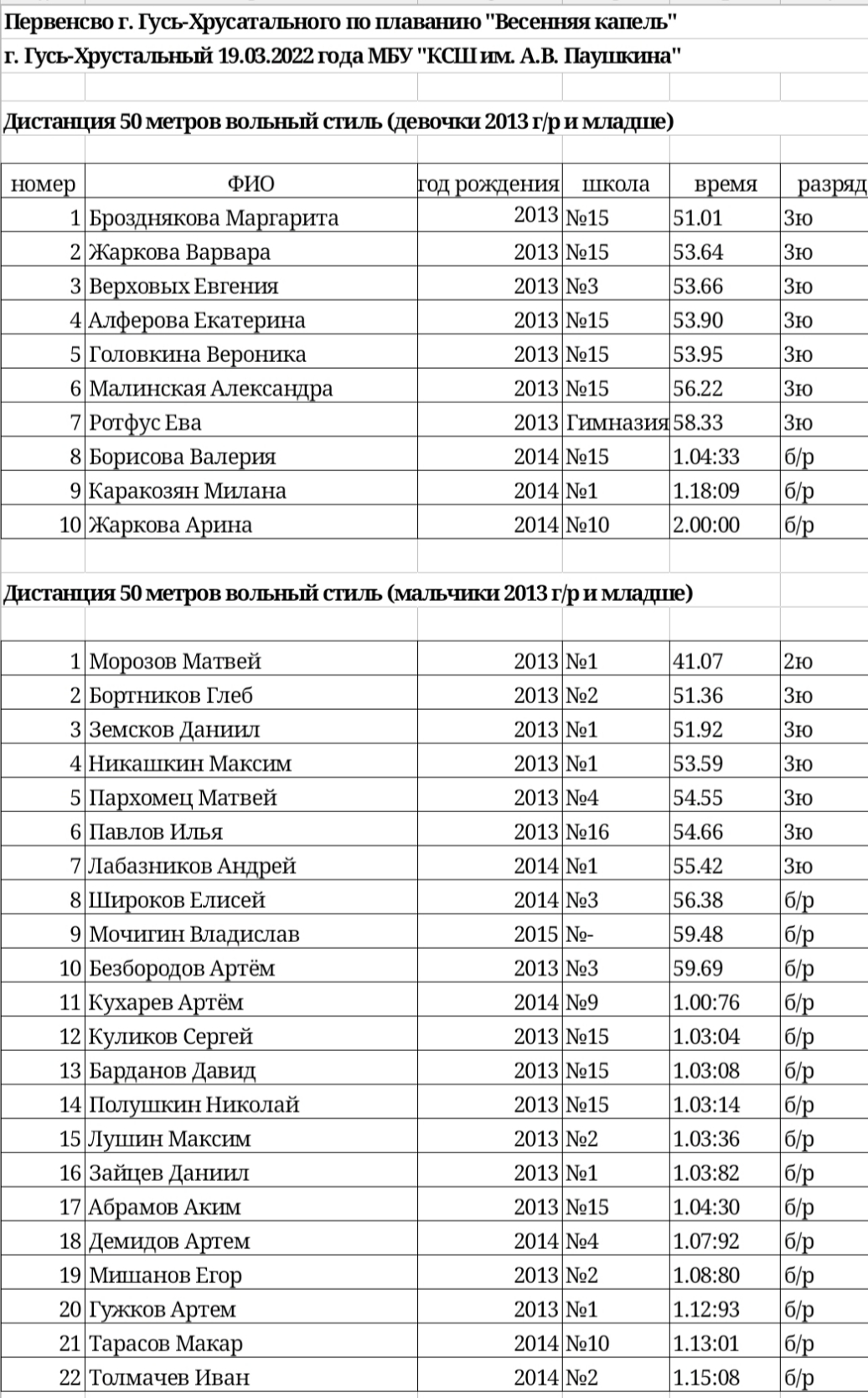 19 марта в комплексной спортивной школе имени А.В. Паушкина прошло очередное первенство г. Гусь-Хрустального по плаванию среди занимающихся в секциях плавания города «Весенняя капель».
