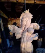 Среди тех сказочных фигур, которые Игорь Володин уже показал миру, опубликовав фото в социальных сетях – двухметровый Кощей Бессмертный, старик и старуха из «Сказки о рыбаке и рыбке», а также сама рыбка.