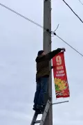 В Гусь-Хрустальном районе продолжают украшать населенные пункты к 77-й годовщине Победы в Великой Отечественной войне. Флаги, растяжки, баннеры и другая праздничная атрибутика появляются повсеместно.