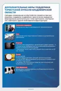 Туристическая отрасль получит субсидию на поддержку юридических лиц и индивидуальных предпринимателей. Средства предусмотрены на создание частных музеев (музейных экспозиций), организацию и проведение событийных мероприятий в низкий сезон (сентябрь-октябрь). Кроме того, будут субсидии на создание модульных некапитальных средств размещения, кемпингов и автокемпингов, обустройство пляжей на водоёмах, поддержку создаваемых туристических маршрутов (формирование дополнительных точек притяжения, санитарных зон, навигации и другой необходимой инфраструктуры).