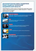Дополнительные меры поддержки предусмотрены для привлечения инвестиций в нашу область. С 1 января 2023 года будут снижены ставки для новых инвесторов по налогу на имущество в соответствии с Законом Владимирской области от 12.11.2003 г. № 110-ОЗ «О налоге на имущество организаций». Кроме того, произойдёт увеличение на один год срока предоставления господдержки инвестиционной деятельности для всех категорий получателей в соответствии с Законом области от 02.09.2002 № 90-ОЗ. Срок предоставления государственной поддержки составит от 3 до 8 лет в зависимости от объёма инвестиций. Также в новом пакете мер господдержки предусмотрено освобождение от уплаты налога на имущество инвесторов, реализующих инвестпроекты в сфере обращения с твёрдыми коммунальными отходами.