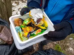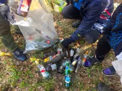 На наше удивление, на этот раз в лесном массиве было очень чисто! Тропинки, лавочки — все сияло чистотой. Хочется выразить благодарность жителям, кто поддерживает порядок, и администрации города, которая вовремя выводит мусор из контейнеров. Но это было в центре, где совершают прогулки жители. Мы решили свернуть ближе к автодороге. И вот там нас ожидал беспорядок: бутылки (пластиковые и стеклянные), очень много пластики и одноразовых салфеток!
