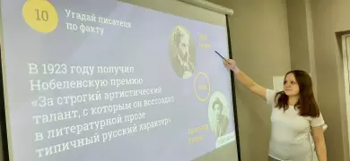 Викторина «Литературные знатоки» состояла из разнообразных заданий разной сложности: необходимо было по фрагменту фотографии или портрета угадать, какой русский писатель или поэт изображён, а также по факту из жизни выбрать один из двух вариантов, о ком идёт речь.
