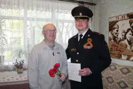 В честь празднования 77-летней годовщины Победы в Великой Отечественной войне руководство межмуниципального отдела МВД России «Гусь-Хрустальный» навестило участника ВОВ Егора Петровича Артемова и жителя блокадного Ленинграда Сергея Степановича Резчикова.