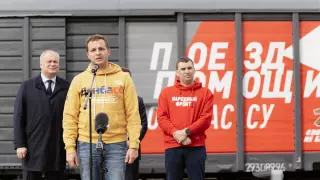 «Это один из самых счастливых дней в моей жизни и жизни Народного фронта. Хочу сказать слова огромной благодарности Российским железным дорогам и всем регионам Российской Федерации, которые не смогли остаться в стороне и отправили свой груз «Поездом помощи Донбассу», всего 2400 тонн. Вся наша команда выдвигается, чтобы встретить, разгрузить, собрать и развезти – огромное количество логистических задач. Но поверьте, это ничто по сравнению с тем объемом помощи, который поедет к людям, особенно на освобожденные территории, где только что отошел фронт», – сказал руководитель Исполкома Народного фронта Михаил Кузнецов.