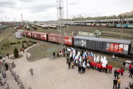 Из Москвы стартовал «Поезд помощи Донбассу», сформированный по инициативе Народного фронта и РЖД. Всего в 68 вагонах собрано и направлено более 2400 т самых необходимых жителям Донбасса вещей.