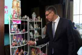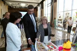 Перед началом торжеств Александр Авдеев осмотрел традиционную тематическую выставку социальной отрасли, на которой главе региона представили лучшие социальные проекты по направлениям «Семья и дети в приоритете» и «Старшее поколение», а также выставку творческих работ воспитанников социальных учреждений Владимирской области.