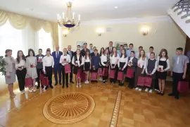 27 юных граждан Российской Федерации, добившихся значительных успехов в учёбе, спорте, творчестве и общественной жизни, получили свой главный документ из рук главы региона Александра Авдеева. Это школьники со всего региона - отличники, юные активисты- общественники и спортсмены. Гусь-Хрустальный район на этом мероприятии представляла обучающаяся 8 класса МБОУ "Краснооктябрьская СОШ" Кристина Шишкова.