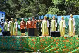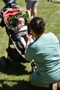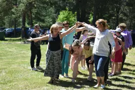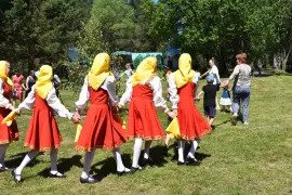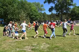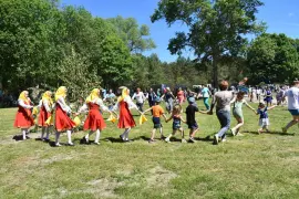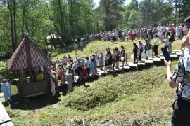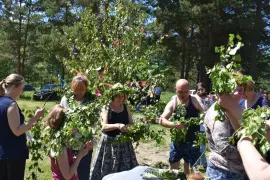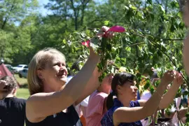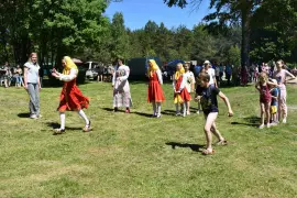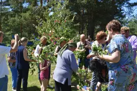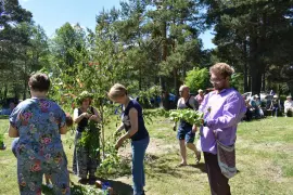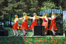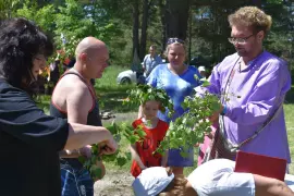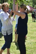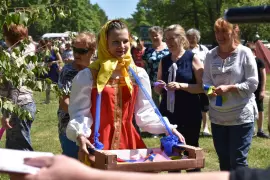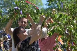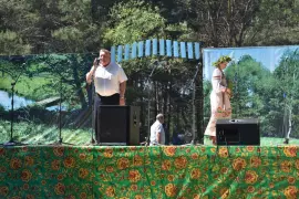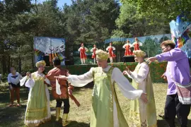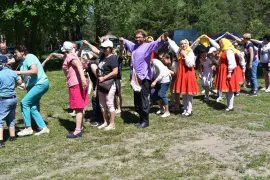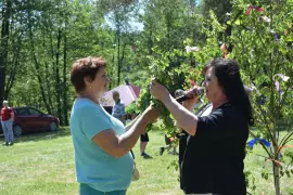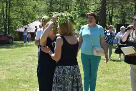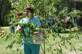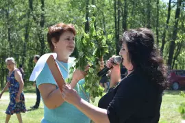 В православный праздник Святой Троицы гости поучаствовали в реконструкции традиционных обрядов, которые совершались в этот праздник нашими предками. С одним из прекрасных обычаев присутствующих познакомили ведущие. Они предложили людям покумиться. Раньше кумление происходило в один из праздников троицкого цикла. Кумились в подавляющем большинстве случаев именно девушки, они называли друг друга кумой, кумочкой, гуляли вместе по деревне, не ссорились, поверяли секреты, шептали друг другу разные пожелания, дарили друг другу подарки.