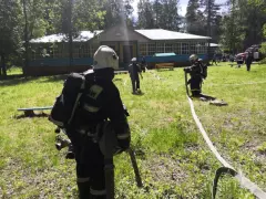 В загородном оздоровительном лагере «Хрусталёк» Гусь-Хрустального района на второй день после заезда сотрудники МЧС России провели пожарно-тактические занятия с условным возгоранием в одном из корпусов и поиском пострадавшего.