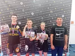 Никита Заланов (14 лет, 57 кг), Вадим Козлов (16 лет, 65 кг) и Полина Козлова (15 лет, 51 кг).