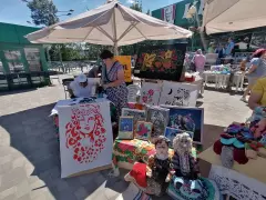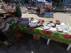 24 июня, на территории киноцентра "Алмаz" (г. Гусь-Хрустальный) состоялся I районный феcтиваль-ярмарка "Территория талантов 33". На ярмарке собрались самые талантливые мастера Гусь-Хрустального района с различными видами декоративного творчества: пэчворк, вязание игрушек, плетение корзин, мыловарение, резьба по дереву, ткачество половиков, роспись пряников и многое другое.