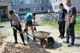 В то время, как ремонтная бригада школы занимается фундаментом, помощники воспитателей в летнем лагере помогают учителям организовать досуг младших школьников. Работая с малышами, подростки учатся отзывчивости, развивают ответственность, раскрывают свои творческие способности.