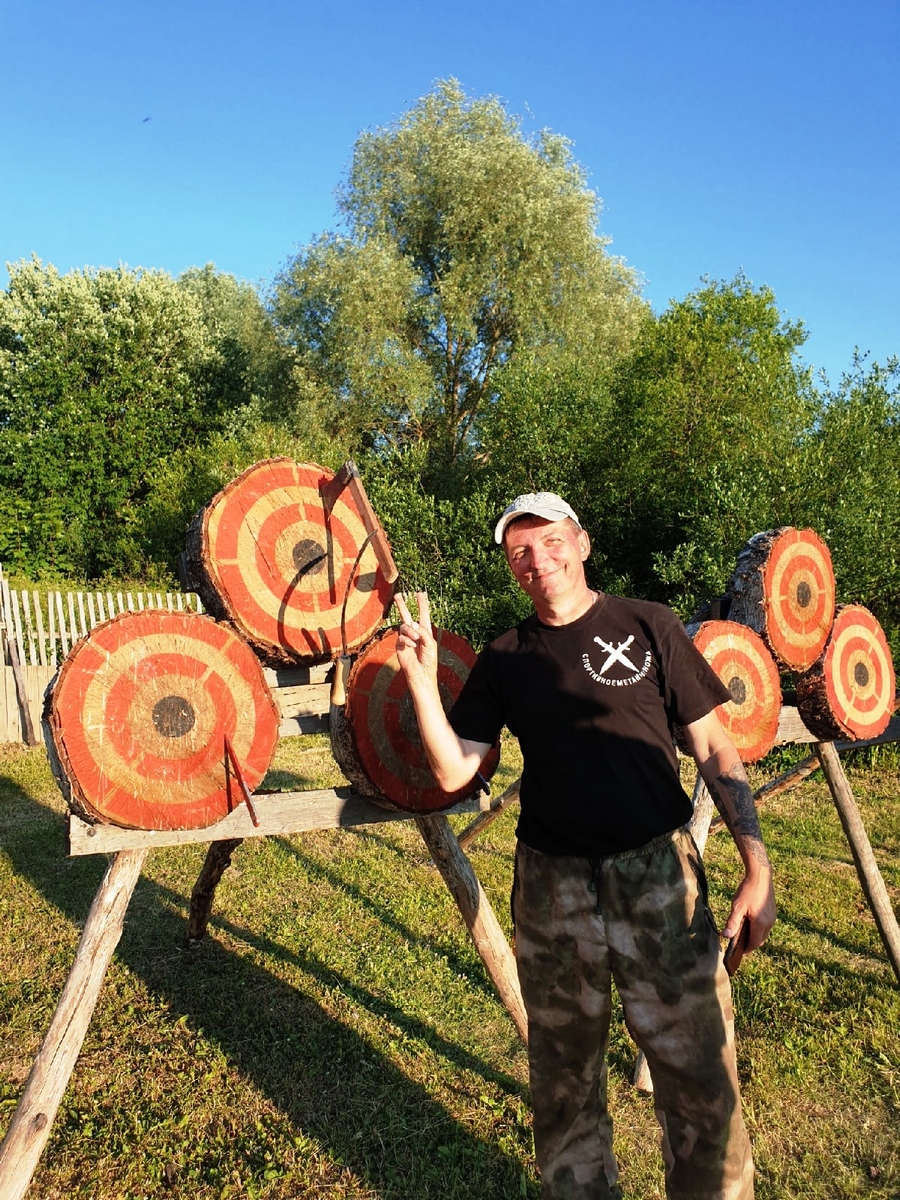 Сергей занял первое место в упражнении «Суета» - это парное упражнение, один спортсмен метает нож с семи метров, а напарник с пяти метров топор, но ножи подаёт метающему ножи напарник метающий топоры и наоборот. Метают спортсмены по очереди три топора и три ножа и данную серию нужно отработать за тридцать секунд. Второе место наш спортсмен занял в упражнении «Интуитив топор» - это упражнение, в котором нужно метнуть три топора с трёх точек от двух до десяти метров, но дистанции спортсмену неизвестны, так-как разметка на всех дорожках хаотична. Третье место Сергей занял в упражнении «Глок» - это метание армейского ножа с пяти метров, начало упражнения – спортсмен стоит спиной к мишени и по команде судьи должен, за десять секунд, развернуться и поразить ножом мишень на точность. И первое место у гусевского спортсмена в упражнении «Нож – топор – лопатка» - нужно с пяти метро в строгой очерёдности поразить три мишени, сначала ножом, затем топором, далее малой пехотной лопаткой, именуемой в простонародии «сапёрной».