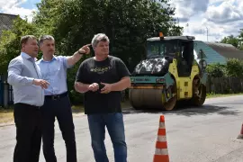 В Гусь-Хрустальном начались работы по асфальтированию ул.Демократической, а также ул.Мира в пос.Гусевском. Совместно с депутатами СНД Еленой Быковой и Валерием Кузнецовым глава города Алексей Соколов побывал на объектах и проинспектировал ход работ.
