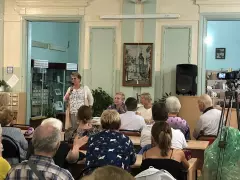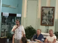 Программа, как и всегда, была очень насыщенной и интересной. Праздник начался с литературного вечера под названием «Вязниковские поэтические вечера» возле Дома-музея Песни, но сильнейший ливень не позволил продолжить вечер на свежем воздухе, поэтому все перешли в здание библиотеки. На вечере выступали многие известные поэты, певцы, музыканты, среди которых был и наш земляк Алексей Малдалиев. Заслуженные аплодисменты получили поэты литературного объединения «Мещера», члены СП России Елена Елохова и Александр Пасхин. Автор этих строк рассказала о том, что в Гусь-Хрустальном в мае этого года прошел 25-й Праздник поэзии и песни, посвященный Алексею Фатьянову, и прочла стихи мещерских поэтов.