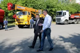 5 августа от здания администрации Владимирской области в Докучаевск Донецкой Народной Республики отправился гуманитарный конвой. В его составе – самая нужная и востребованная сейчас для города техника: автокран грузоподъёмностью 25 тонн, комбинированная дорожная машина, фронтальный и мини-погрузчики, автовышка и внедорожник отечественного производства.