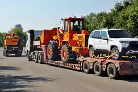 Владимирская область помогает Докучаевску не только отправкой гуманитарных грузов, но и «руками»: в этом городе сейчас трудятся более 40 наших земляков, которые восстанавливают разрушенную школу, ремонтируют пострадавшие от обстрелов крыши зданий. И техника, которая сегодня отправилась на Донбасс, поможет им в этом: гидроподъёмник – в ремонте фасадов и замене окон, большой погрузчик – в разборе завалов, ковровские мини-погрузчики – в перемещении грузов.