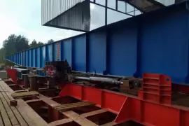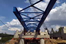 В связи с высокой готовностью опор стартовали работы по надвижке на них пролётного строения. Оно собирается на берегу, затем при помощи силовых гидроцилиндров надвигается в проектное положение.