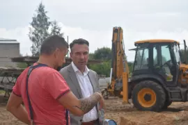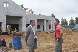 Глава администрации Гусь-Хрустального района Алексей Кабенкин во время рабочей поездки проинспектировал строительство дома культуры в деревне Уляхино. На строительной площадке он встретился с представителями строительной организации, обсудил ход работ, сроки выполнения подрядчиком своих обязательств, проверил как идет работа на объекте, и как выполняется благоустройство территории.