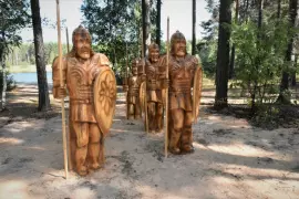 Буквально на днях коллекцию сказочных персонажей в парке пополнили могучие богатыри. Шесть исконно русских витязей установлены неподалеку от персонажей пушкинской «Сказки о рыбаке и рыбке». Полная композиция будет размещена так, чтобы создавалась иллюзия, будто богатыри выходят из воды. Помните, как в отрывке из поэмы Александра Сергеевича «Руслан и Людмила»: «… И тридцать витязей прекрасных чредой из вод выходят ясных…»? Правда, по задумке автора, в нашей «Сказке» их будет 12, остальные – пока в процессе.