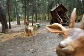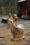 В добром соседстве с ними – колоритный Петух, устроившийся возле уютного деревянного домика. В целом в этой зоне теперь Заяц, Петух и Собака – персонажи любимой многими детской сказки «Заюшкина избушка».