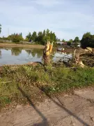 Сейчас будем решать, какое дерево оставить, вот здесь асфальт, будем мы это расширять. Сейчас это все в куче, например, сейчас вопрос, куда все это увезем? Затем, сейчас уже в дороге, прибудет сюда земснаряд. Они будут полностью, они дали добро еще раз говорю, вы не думайте, что это вот, муниципальная техника. Это ребята, у которых есть свой экскаватор… Вот его начали, договорился Алексей Николаевич. Карасей-то пустим точно, потому что вопросов по этому очень много…»