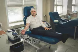 «У меня сохранились документы о сдачах крови с тех давних пор, когда я был курсантом академии Можайского. Спустя перерыв, уже во Владимире, я продолжил ее сдавать. Тогда, вроде бы, два раза сдавал, а сейчас – четвертый или пятый. Для меня это возможность помогать людям, спасать жизни. В позапрошлый раз мне пришло уведомление на телефон – Роман Валерьевич, мол, ваша кровь пошла в дело. Непередаваемое чувство, поверьте мне. Кроме того, поделюсь лайфхаком – перед сдачей крови надо пройти очень много обследований, сдать множество анализов. И это можно сделать прямо тут, на станции переливания, бесплатно. Так что, доноры, в том числе и таким образом, следят за своим здоровьем».