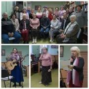 После посещения музея и общения с увлеченным и интересным человеком литераторы из Гуся–Хрустального в читальном зале поселковой библиотеки села Тума общались с местными любителями словесности. Перед творческой интеллигенцией села выступили: поэт, автор 10-ти поэтических сборников, член СП России Елена Елохова, члены Российского СП Аркадий Алферов, поэт и автор более 150 песен на свои стихи, написанных в содружестве с музыкантом Александром Журавлевым, с супругой Зоей Алферовой, членом литобъединения; Олег Балашов, поэт, автор и исполнитель песен на гитаре, а также Наталья Афанасьева – руководитель клуба авторской песни «Счастливый миг» при литературном объединении «Мещера». Автор этих строк прочла стихи Виктора Полторацкого.