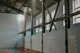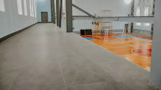 Ремонт начался здесь еще ранней весной этого года. С тех пор в спортивном комплексе уже сделано многое: старые деревянные рамы заменены на современные пластиковые стеклопакеты (в количестве 19 штук), в игровом зале покрашены стены, проведен ремонт системы освещения, установлены рольставни, пол на балконе уложен плиткой.