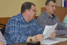 В актовом зале администрации Гусь-Хрустального района состоялось заседание общественного совета. Провел встречу председатель совета Николай Скулов. В работе заседания также приняли участие специалист по развитию туризма и организации работы с муниципальными программами районного методического центра Татьяна Кольцова, начальник управления по вопросам развития промышленности, сельского хозяйства и предпринимательства Евгений Скворцов.