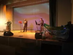 Представители Гусь-Хрустального района приехали с концертной программой: тематические композиции исполнил вокально-инструментальный ансамбль «Лазурит», в исполнении Владимира Каташова прозвучала песня «Офицеры». Наши ветераны боевых действий поздравили председателя КГОО «Патриоты Отчизны» Валерия Калингера и всю Ивановскую область с историческим событием, пожелав больших успехов в деле патриотического воспитания молодежи.