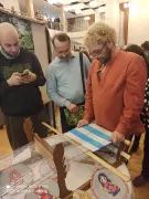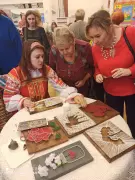 В рамках акции в Областном Дворце культуры и искусства состоялась выставка мастеров декоративно-прикладного творчества. От Гусь-Хрустального района приняли участие мастера: Сюзанна Сибирцева (прядение шерсти на прялке, Аксеновский СДК), Алексей Першин (ткачество поясов, половиков на станке, МБУК «ЦКР района»), Марина Миллер (рисование нитями на дощечках, МБУК «РМЦ»).