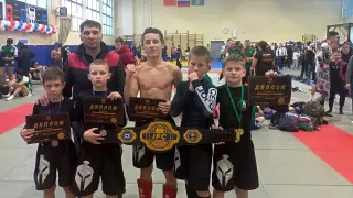 1 место - Никита Заланов (14-15 лет, 58кг), Кирилл Степаков (10-11 лет, 37 кг), Андрей Маркин (10-11лет, 45 кг);