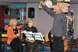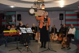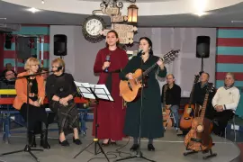 В этот вечер, как и всегда после хорошо организованной литературной встречи, было светло на душе от доброжелательной публики, от улыбок и хороших серьезных песен. На этот раз встреча была литературно-музыкальной, посвящалась классической авторской песне и получила в название строчку из стихотворения Булата Окуджавы «Надежды маленький оркестрик…» Собственно этой замечательной песней и открылся вечер. А исполнили ее барды - лауреаты многих музыкальных премий и конкурсов из Владимира, Судогды, Калининграда, города Гусь-Хрустального и Гусь- Хрустального района, а также поэты члены нашего литературного объединения «Мещера».
