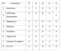 Таблица чемпионата города по мини-футболу после 3 туров.
